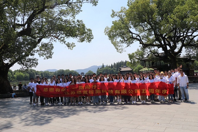 值此雁藍(lán)檢測成立五周年之際,公司工會(huì)組織全體員工兩日(9.5-6)杭州行團(tuán)建活動(dòng),在做好個(gè)人防護(hù)的前提下,雁藍(lán)人著統(tǒng)一司慶文化衫,在杭州宋城、西湖、西溪濕地公園留下美麗的身影。